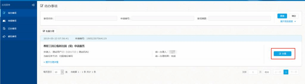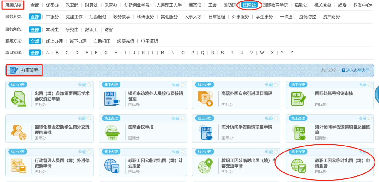 3、“Organization”find“International Office”,“Business Procedure”click“Short-term Business Trip Application Service”