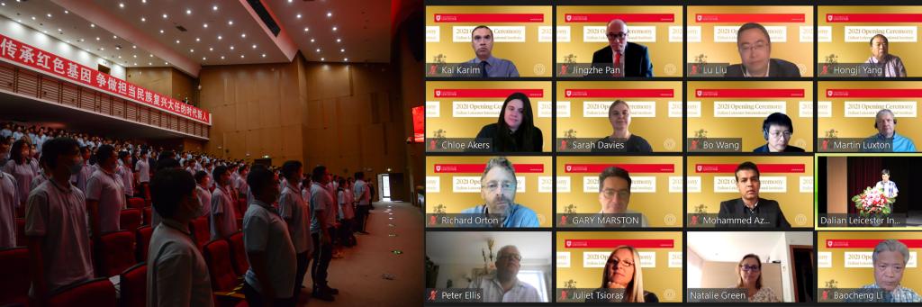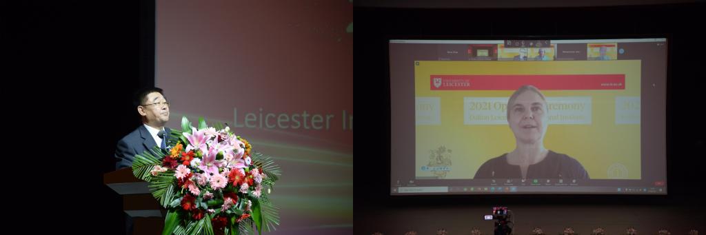 Recently, Leicester International Institute, Dalian University of Technology (DLI) holds the opening ceremony to welcome the cohort of 2021.Sarah Davies, Pro Vice-Chancellor and Head of the College of Science and Engineering of University of Leicester (UoL), Guo Jinming, Assistant President of Dalian University of Technology (DUT), Zhan Jingjing and Pan Jingzhe, Deans of DLI attended the ceremony. Besides, other UoL and DLI faculty member representatives, student representatives also attended.