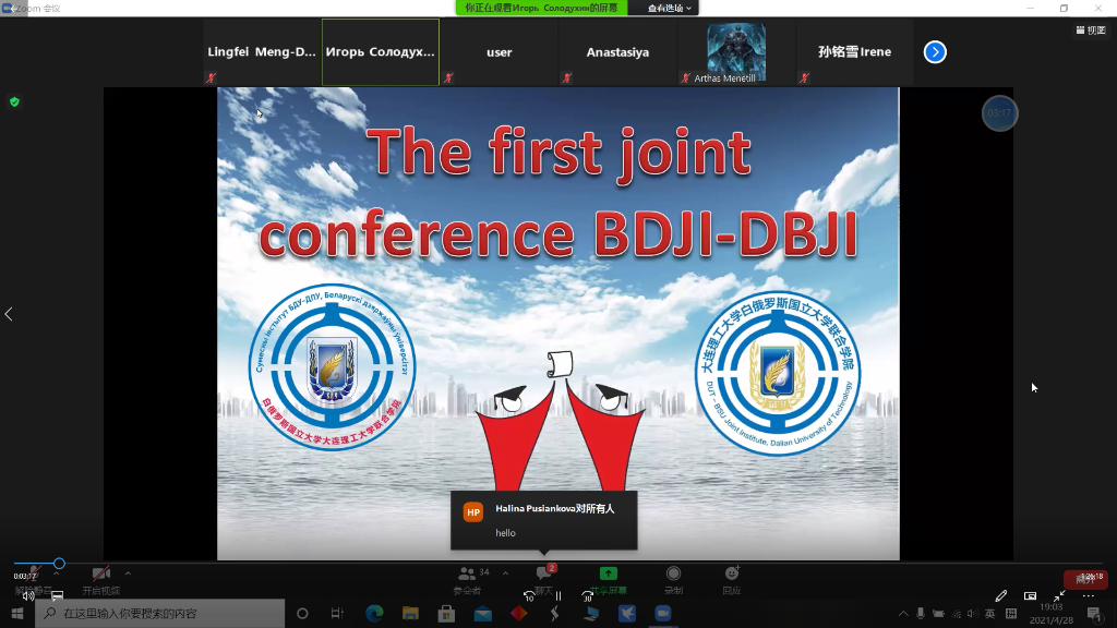 In order to further promote the implementation of the “Schoolfellow Friendship” Initiative of top universities in China and Belarus, DUT-BSU Joint Institute, Dalian University of Technology, and BSU-DUT Joint Institute, Belarusian State University, held a series of activities themed “Friendship in Minsk & Friendship in Dalian” from April 27 to 28. The opening ceremony was hosted by Ihar Saladukhin, the Dean of BSU-DUT Joint Institute, and attended by Guo Shuhong, the Associate Dean of DUT-BSU Joint Institute. More than 70 students from both sides made wonderful online presentations in groups. The second and third phases of the activities are expected to take place in May, so please stay tuned!