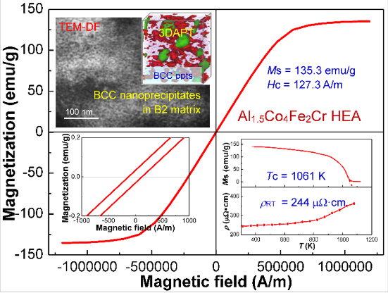 Prof. Wang Qing and her team members from School of Materials Science and Engineering, DUT, have made a breakthrough in the research of soft- magnetic properties of high-performance high entropy alloys, which achieved the structural-functional integration of material design. The research work entitled A novel soft-magnetic B2-based multi-principal-element alloy with a uniform distribution of coherent body-centered-cubic nanoprecipitates was published in Advanced Materials (IF=27.398), a top journal in the field of materials science.