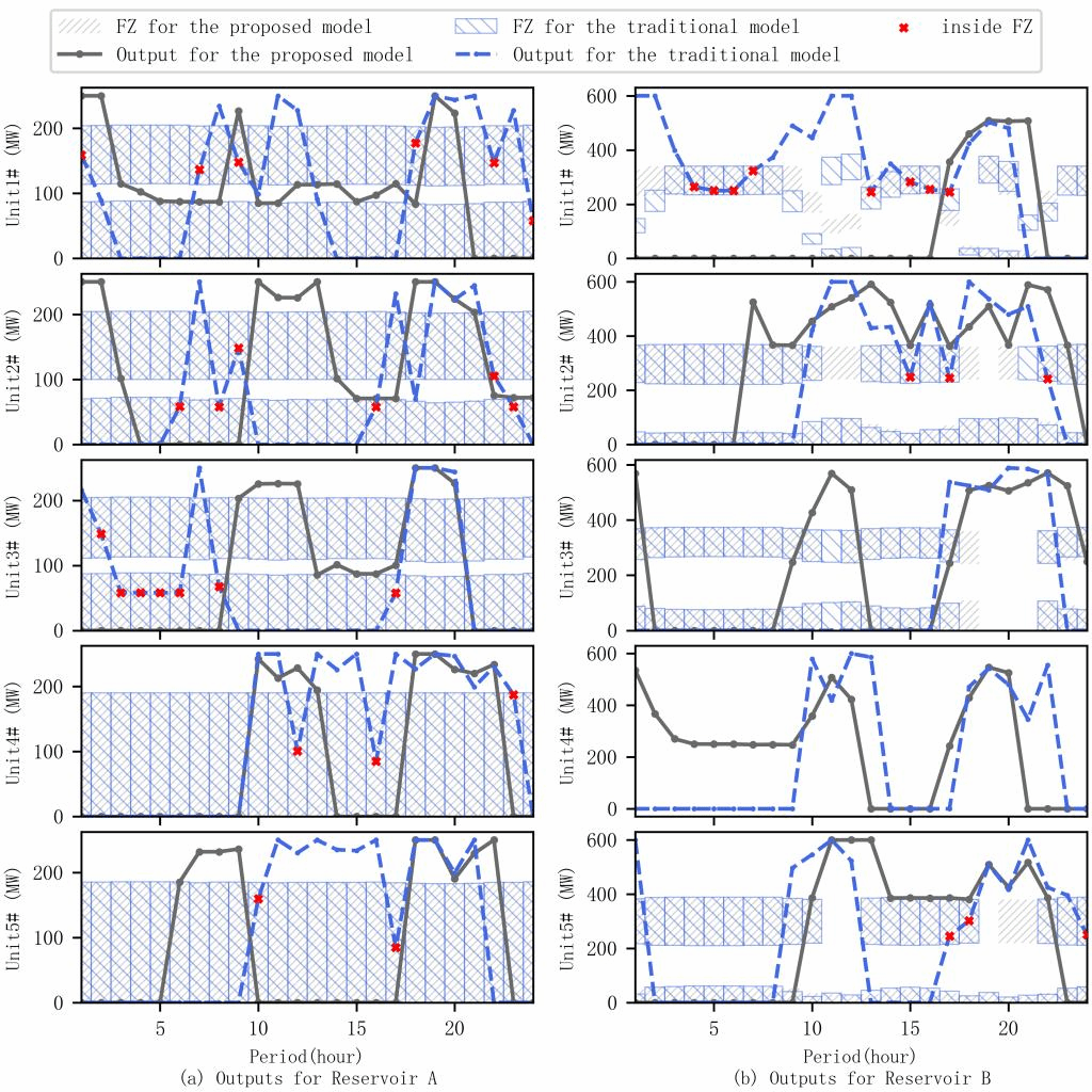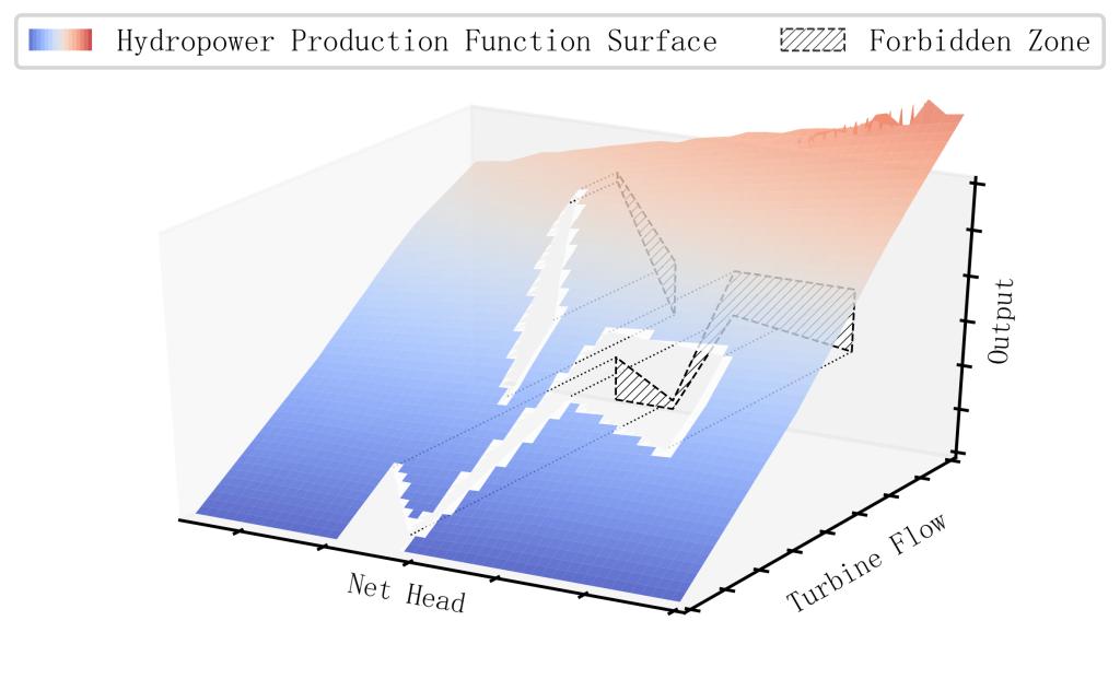 The irregular forbidden zone(FZ) is a common phenomenon with giant hydropower plants developed in the past two decades in China. Irregular shapes of FZs significantly challenge hydro unit commitment (HUC). The work of Prof. Cheng’s team proposes a novel MILP based framework for HUC considering irregular FZ related constraints including the FZ constraint, effects of linearization errors in both the net head and the output, and the FZ crossing constraint. In the framework, the FZ constraint is handled by the optimal convex partitioning algorithm and the common structure-based formulation method. Inspired by the planar translating robot placement problem, linearization errors are considered by the Minkowski sum method. To handle the FZ crossing constraint, they then propose a graph theory-based approximate formulation method. The framework is integrated into a HUC model with an objective of peak shaving. The model is then tested with a batch of real-world instances of a cascade hydropower system formed by ten giant units with highly irregular FZs. The results show their framework can effectively consider the irregular FZ related constraints. The major advantage of their framework is its ability to handle the irregular shapes of FZs without any tedious and error-prone manual processing.