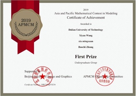 Recently, the results of the 2019 Asia and Pacific Mathematical Contest in Modeling (APMCM) was announced. As an influential competition in the Asia-Pacific region, nearly 20,000 students from more than 500 universities attended this contest. 92 students from Leicester International Institute, Dalian University of Technology won different categories of prizes. Xia Mingxuan and Wang Yiyan were awarded the First Prize, which was the best result on DUT, Panjin campus and another top prize in the international mathematical modeling competition for students besides the American Mathematical Modeling Competition.