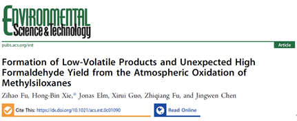 Recently, Prof. Xie Hongbin’s team from School of Environmental Science and Technology published important research work entitledFormation of Low-Volatile Products and Unexpected High Formaldehyde Yield from the Atmospheric Oxidation of MethylsiloxanesinEnvironmental Science & Technology (DOI: 10.1021/acs.est.0c01090), an international authoritative journal in the field of environment.