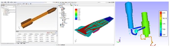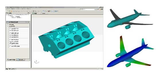 Fig. 2 Typical engineering applications of SiPESC: structural dynamics model updating; overall optimization on design of aircraft structures; structural analysis of nuclear power pipelines