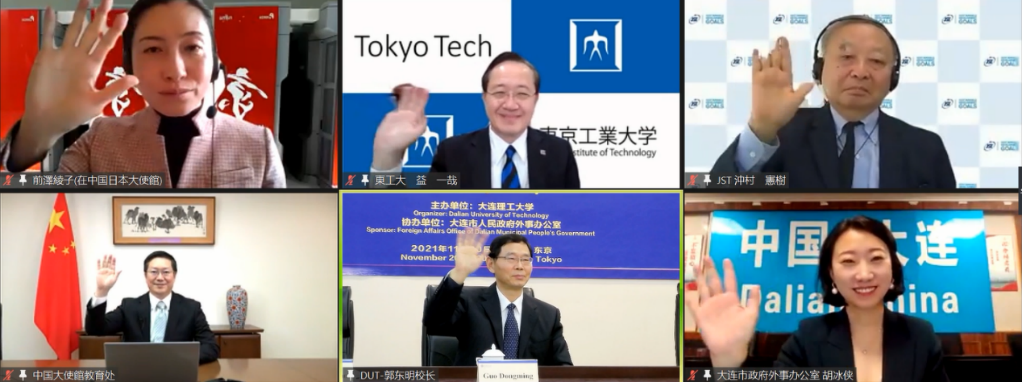 The Online Opening Ceremony of the 15thAnniversary of the Inter-University Agreement between Dalian University of Technology (DUT) and Tokyo Institute of Technology (TIT) and the Anniversary Commemoration of the Cooperation between DUT and Japanese Partner Universities was held both online and offline recently. Hu Zhiping, Minister Counsellor of the Education Section of the Chinese Embassy in Japan, Maesawa Ayako, Counsellor of the Press and Culture Center of the Japanese Embassy in China, Kazuki Okimura, Honorary President and Haruko Yoneyama, Executive Director of Japan Science and Technology Agency, Kazuya Masu, President of TIT, Jun-ichi Takada, Vice President of TIT, Hu Bingxia, Vice President of Dalian People’s Association for Friendship with Foreign Countries, Guo Dongming, President of DUT, and Luo Zhongxuan, the University Leader for International Affairs of DUT, attended the event.