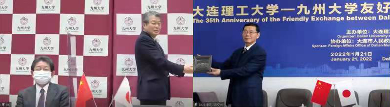 1月21日,我校与九州大学友好交流三十五周年纪念活动在线上顺利举行,校长郭东明出席活动并致辞。中国驻福冈总领事馆总领事律桂军,日本驻沈阳总领事馆常驻大连领事办公室副所长熊野慎治,日本科学技术振兴机构执行总监米山春子,九州大学校长石桥达朗,九州大学副校长荒殿诚、河野俊行,我校校长助理罗钟铉,两校国际交流管理部门及我校机械工程学院、建筑与艺术学院相关负责人,两校师生代表参加活动。