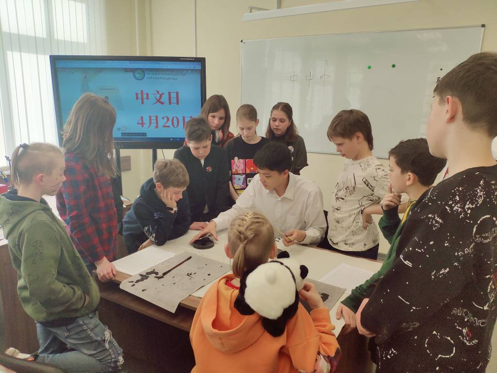 为迎接“中文日”的到来,“白大孔院”教师在汉语教学辅导班课堂上为学员们分享了汉字和中国24节气的相关知识,并带领学员进行书法执笔、行笔等方面的针对性练习。孔院教师还为当地中小学生举办了“书法公开课”,以笔墨为媒介、以文化为内核,师生共同体味“知白守黑”的中国文化精神。
