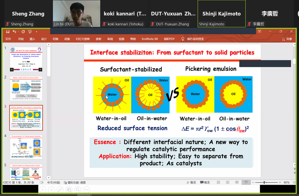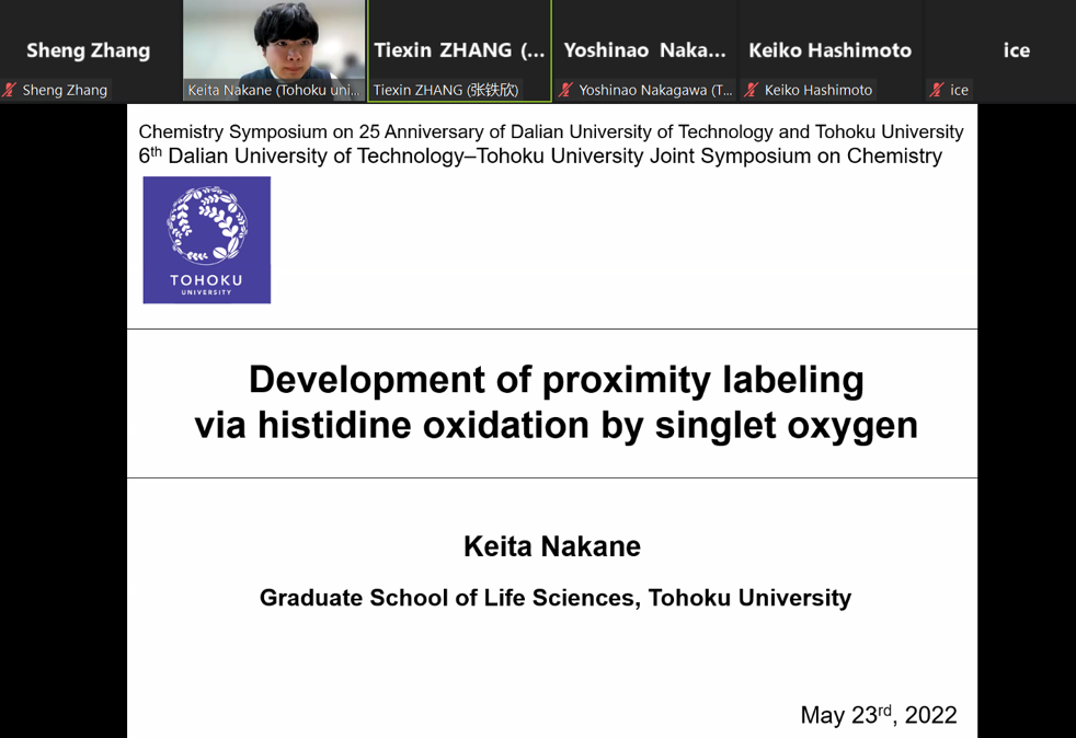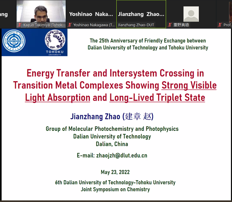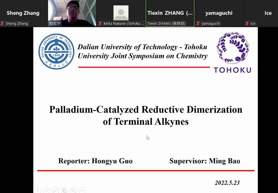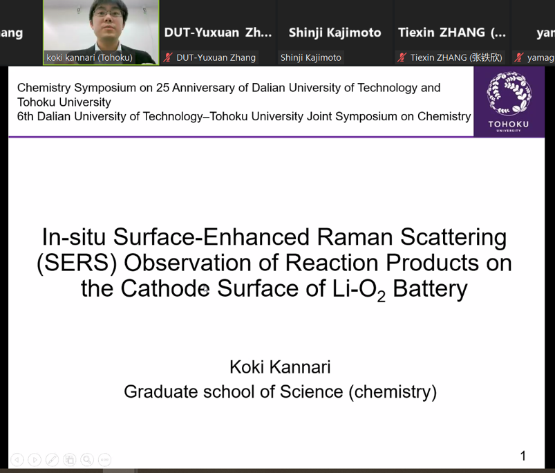 5月23日下午,大连理工大学与日本东北大学友好交流二十五周年纪念活动暨第六届大连理工大学与东北大学化学化工双边学术研讨会在线上举行。会议分为双方代表开幕致辞、教授论坛、研究生论坛、双方代表闭幕致辞四部分,共有两校近百名化学化工学科师生参加。