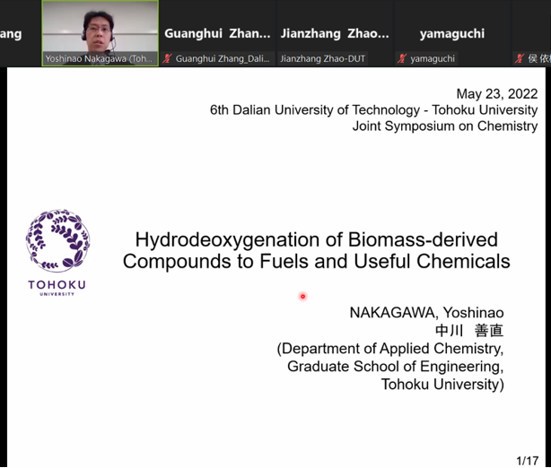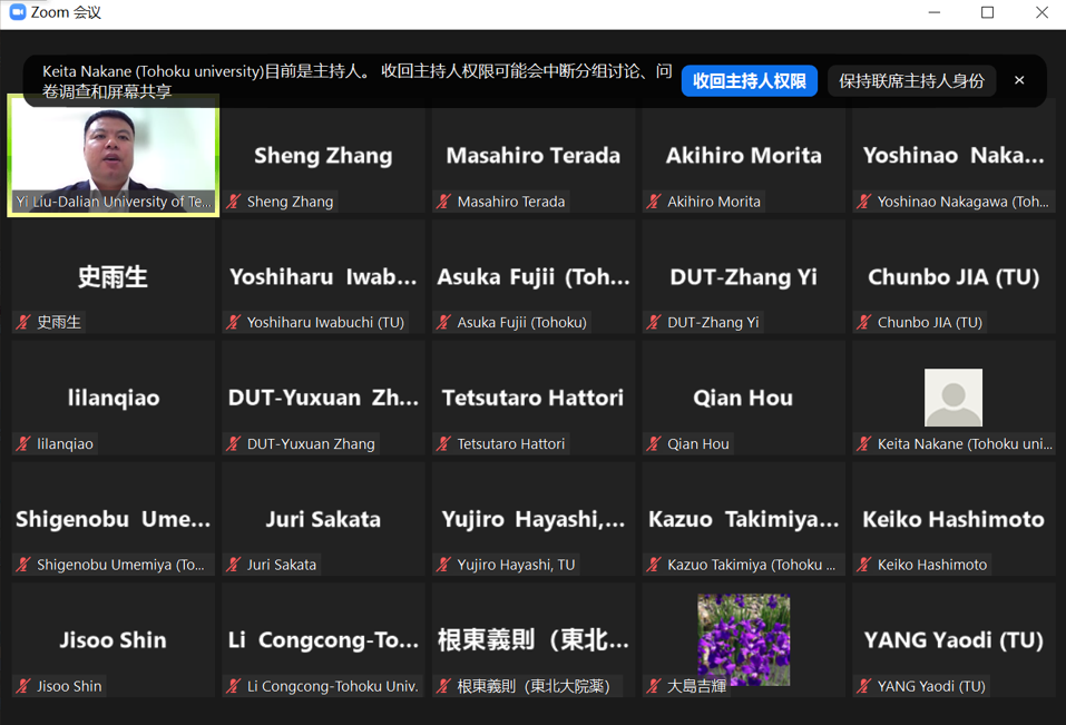 研讨会由大连理工大学化工学院的外籍教授山口雅彦教授主持。大连理工大学化工学院副院长刘毅教授、东北大学理学部部长寺田真浩教授出席活动并发表致辞。