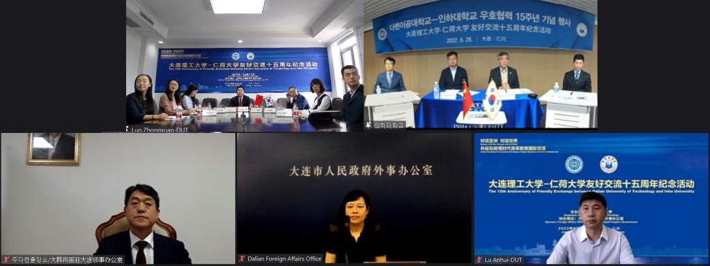 6月28日,大连理工大学-仁荷大学友好交流十五周年云端纪念活动以线上、线下相结合的方式顺利举办。韩国仁荷大学副校长崔基永,大韩民国驻沈阳总领事馆驻大连领事办公室代表郭永熙,大连市人民政府外事办公室主任成英俊,我校副校长罗钟铉、校长助理陆安慧,两校国际交流管理部门及数学、生物医学工程学科师生等百余名相关代表出席。