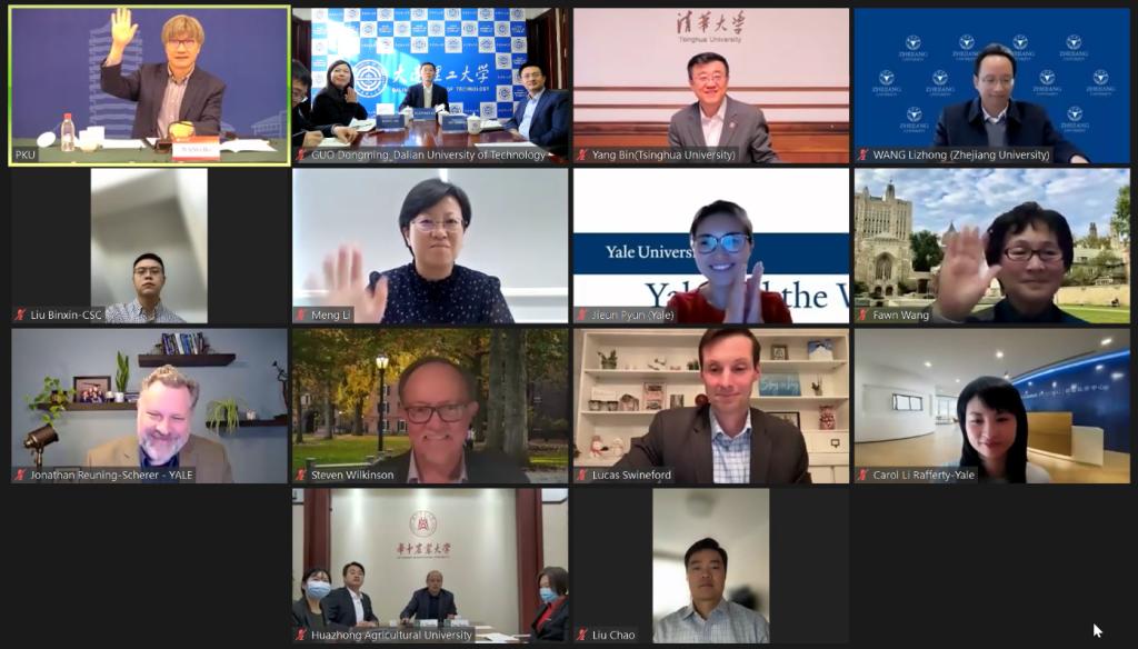 12月6日上午,以“数智时代的教与学”为主题的耶鲁—中国大学校长线上交流活动顺利举办,郭东明校长出席活动并作主题报告。该活动由国家留学基金管理委员会主办,北京大学承办。国家留学基金管理委员会、耶鲁大学、清华大学、北京大学、浙江大学、华中农业大学校领导及专家参会,我校科学技术研究院、国际合作与交流处、网络与信息化中心相关负责人一同参会。