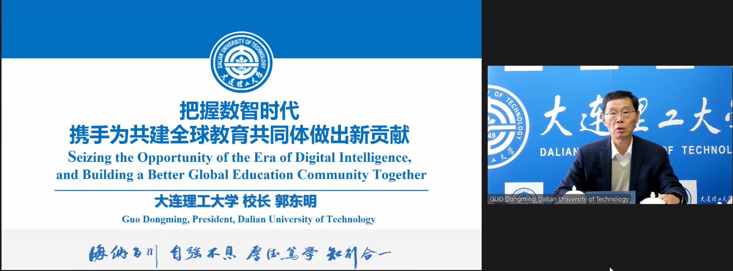 郭东明校长在《把握数智时代,携手为共建全球教育共同体做出新贡献》为题的报告中指出,大连理工大学主动把握数智时代为高等教育带来的新机遇,以高水平的科学研究和学科平台为基础支撑,在数智化和智能化学术研究及产学研方面开展研究并取得一系列成果的基础上,不断夯实数字化基础设施建设和教师数字技术应用能力建设,将数智化、智能化应用于人才培养过程中。他以举办全国水下机器人大赛为例,展示了我校依托通信、机械及流体力学等多学科交叉研究和高新技术,开展前沿科学研究,并以科教融合、产教融合的方式在前沿科研领域所带来的数字化创新育人成果。他也倡议中美高校通过国际交流合作,携手建设成为更有活力、更融合、更有韧性的大学,共建全球教育共同体。