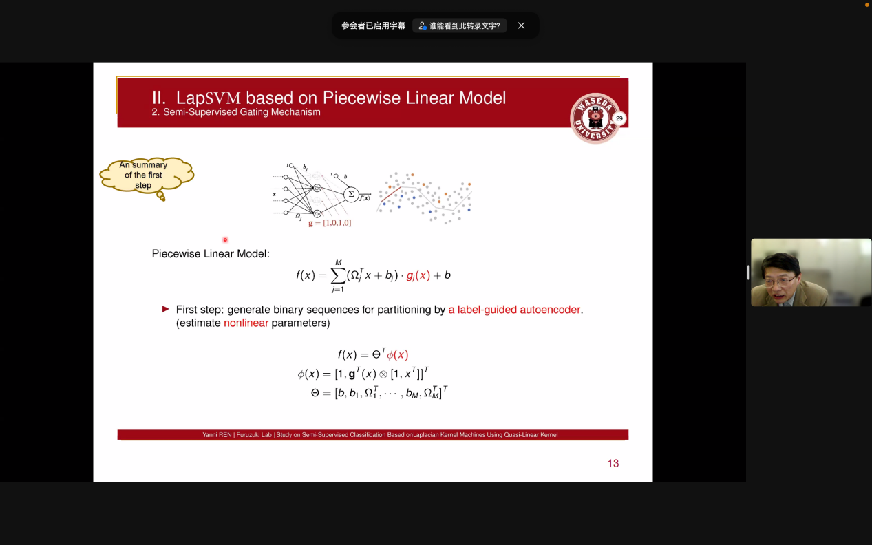 早稻田大学信息生产系统研究科TakayukiFurutsuki教授做了基于杜阿斯线性核拉普拉斯支持向量机的半监督分类的学术报告,主要内容包括计算智能及其在系统建模和识别、生物信息学、时间序列预测、金融分析、数据挖掘等方面的应用。