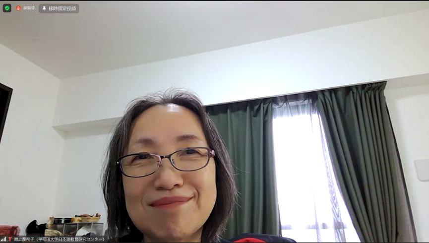 最后由早稻田大学日本语教育研究中心所长池上摩希子教授进行了结束致辞。池上摩希子教授表示希望两校可以持续深化日语学科之间的交流,相信这会对两校的课程设置、人才培养与协同发展产生积极的影响。同时也表达了对我校学生的鼓励与祝福。