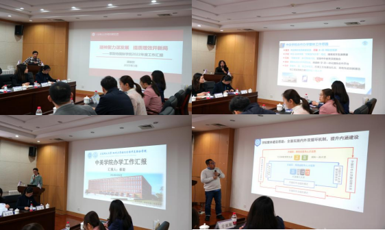 各学院负责人结合2022年度中外合作办学工作分别作总结汇报,在归纳分享合作办学成功经验的基础上,梳理发展过程中遇到的困难和相应解决措施,对未来工作提出了设想和奋斗目标。中外合作办学管理办公室负责同志就学校国际交流合作重点项目以及课程教学国际化、师资队伍国际化、学生培养国际化、科研学术国际化、组织管理国际化等学校国际化重点工作作全面介绍,并就学校的国际化办学目标、国际化考核指标体系以及方案进行了说明。