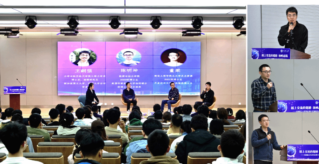 力学与航空航天学院工程力学系助理研究员王嗣强、能源与动力学院博士生陈明坤和建设工程学院博士生董梁分别分享了在国外访学的经历和心得体会,围绕同学们共同关心的“如何选择国外导师、克服文化差异更好适应留学生活”以及“留学前准备”等问题逐一解答并提出建议。