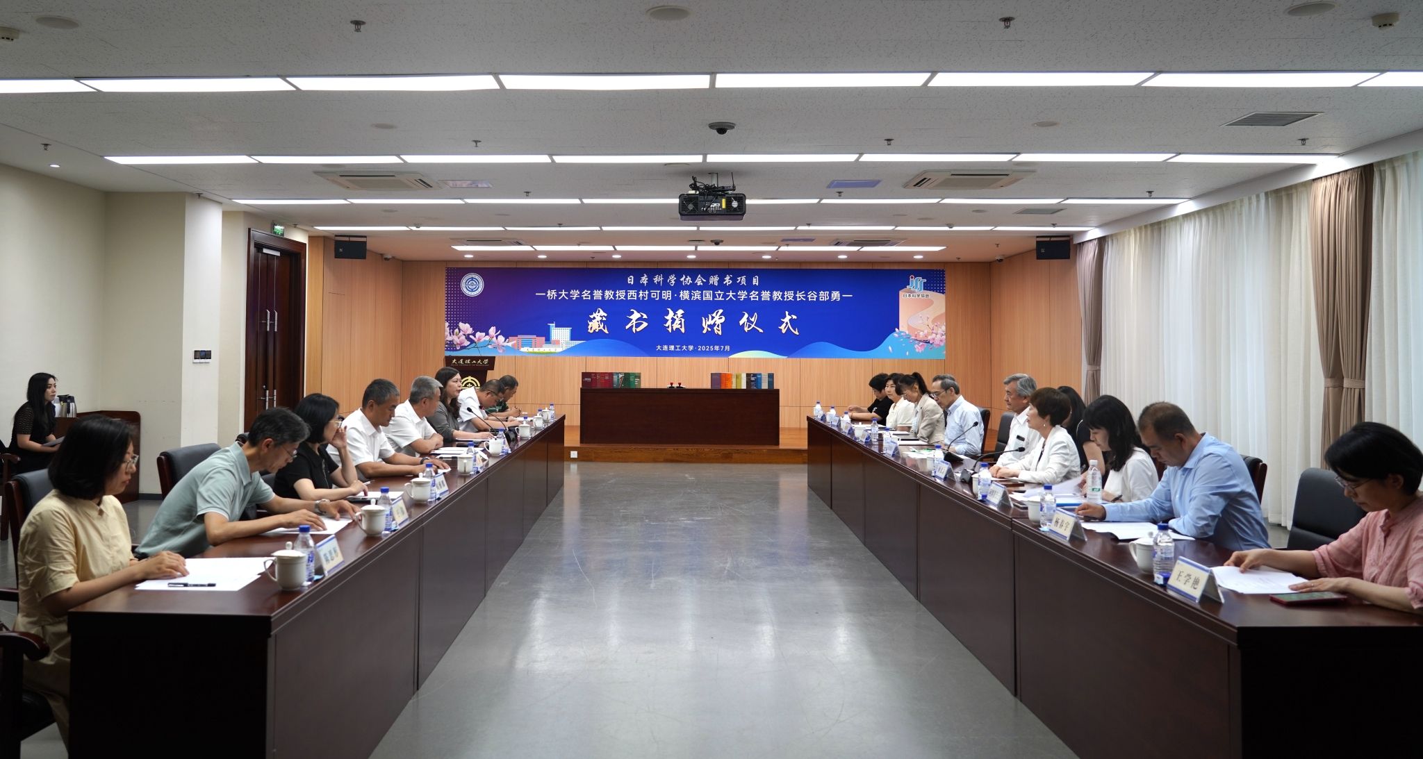 仪式上,长谷部向我校捐赠1656册经济学领域俄文藏书并在赠书扉页加盖纪念章,这批书籍源自其恩师、一桥大学名誉教授西村可明。康旭东表示,这些珍贵资料既是尊师重道、薪火相传和中日友好情谊的体现,也将为相关学科的学术研究提供重要的文献支撑。顾文君回顾了日本科学协会自1999年起向中国87所高校捐赠409万册图书的历程,肯定了我校作为北方中转集散枢纽的贡献。图书馆馆长贾明代表我校完成交接并向长谷部颁发捐赠证书与纪念牌。仪式最后,康旭东向横滨国立大学校长特别助理徐浩源教授颁发大连理工大学海外合作代表续聘证书。