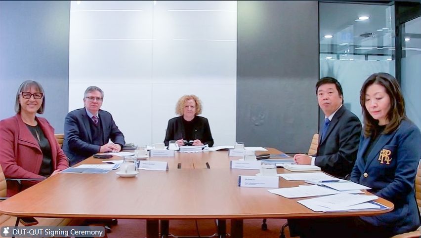 7月31日上午,大连理工大学—昆士兰科技大学合作办学协议签约仪式通过视频会议形式举行。校长贾振元,副校长罗钟铉、张弛,校长助理占敬敬出席仪式。昆士兰科技大学校长谢镁莉,副校长马克·哈维、顾元通及工学部部长阿娜·德丽特克等出席仪式。人力资源处、研究生院、教务处、国际合作与交流处、会计核算中心、计算机科学与技术学院、建设工程学院、医学部等相关单位负责人参加仪式。仪式由罗钟铉主持。
