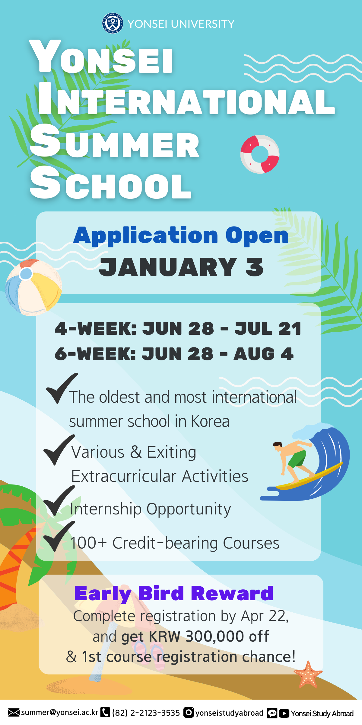 韩国延世大学国际夏令营(简称YISS)为暑假短期自费项目,本年由于疫情影响同时开通线上及线下课程。该项目自1985年开办至今,由延世大学知名教授授课。学生在拓展和深化学术知识的同时,在多种多样的活动中体验韩国文化,与来自世界的朋友建立友谊,拓宽国际化视野。