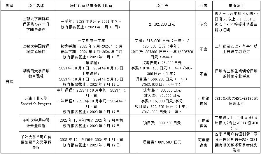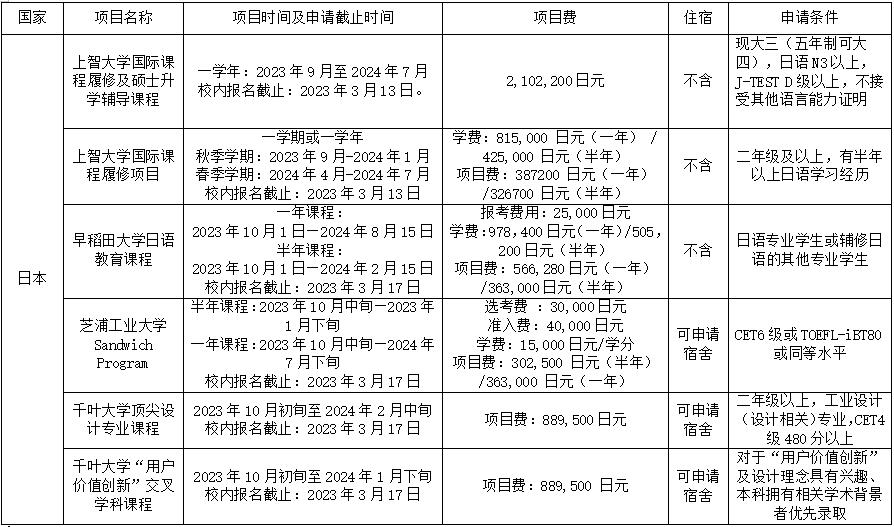 2023年度日本交流项目情况公布如下: