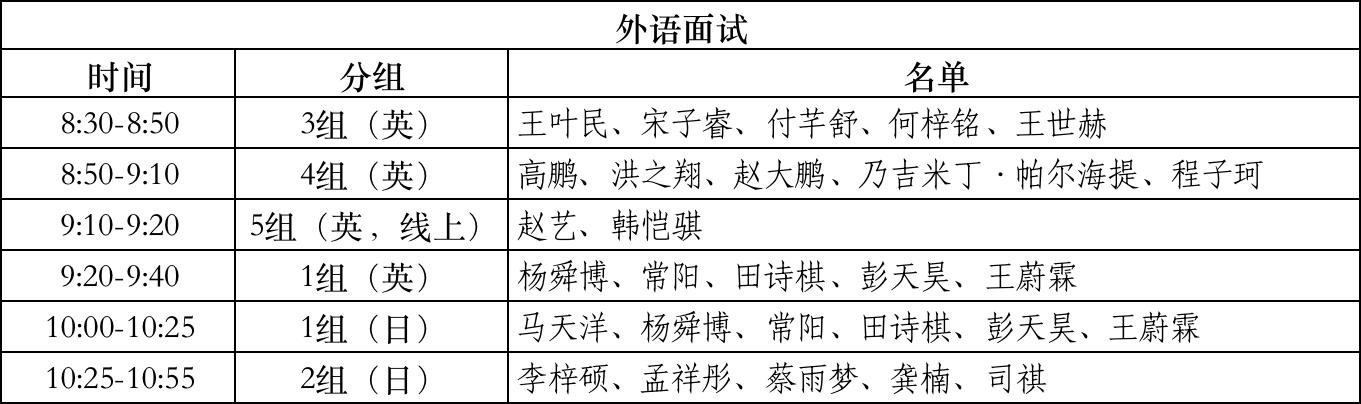 *根据项目要求杨舜博、常阳、田诗棋、彭天昊、王蔚霖同学需要参加英语、日语两场外语面试