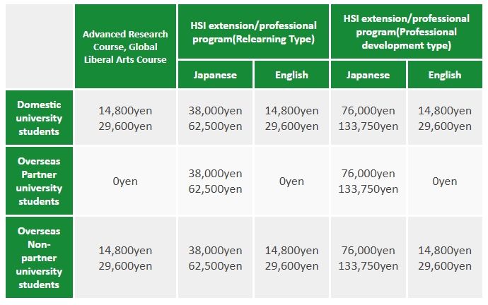3. 费用:授课课程费用详见下表,我校学生属于 Overseas Partner university students