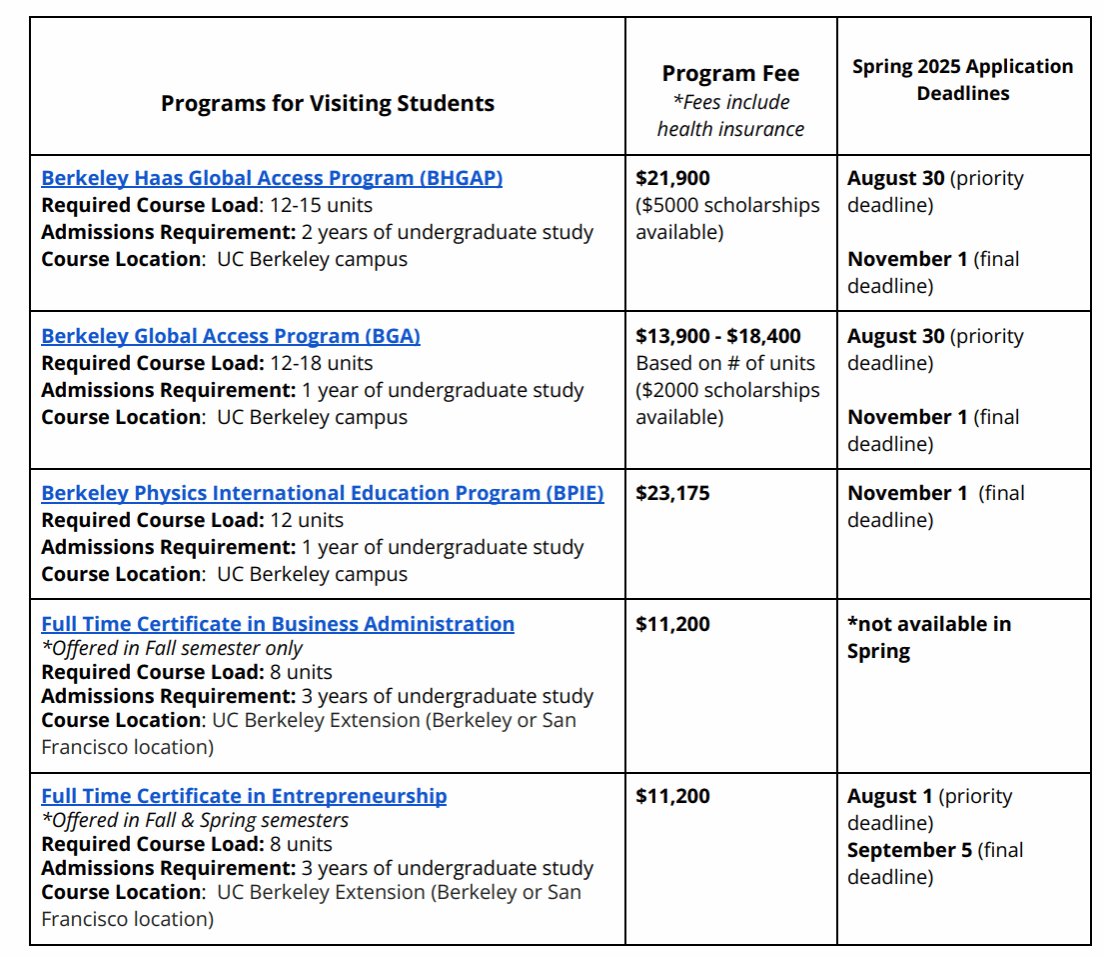 同时请于10月20日前将以下材料发送至lix@dlut.edu.cn,将邮件命名为【2025年春季赴加州大学伯克利分校自费修学分项目-子项目名称-姓名-学部/学院】。