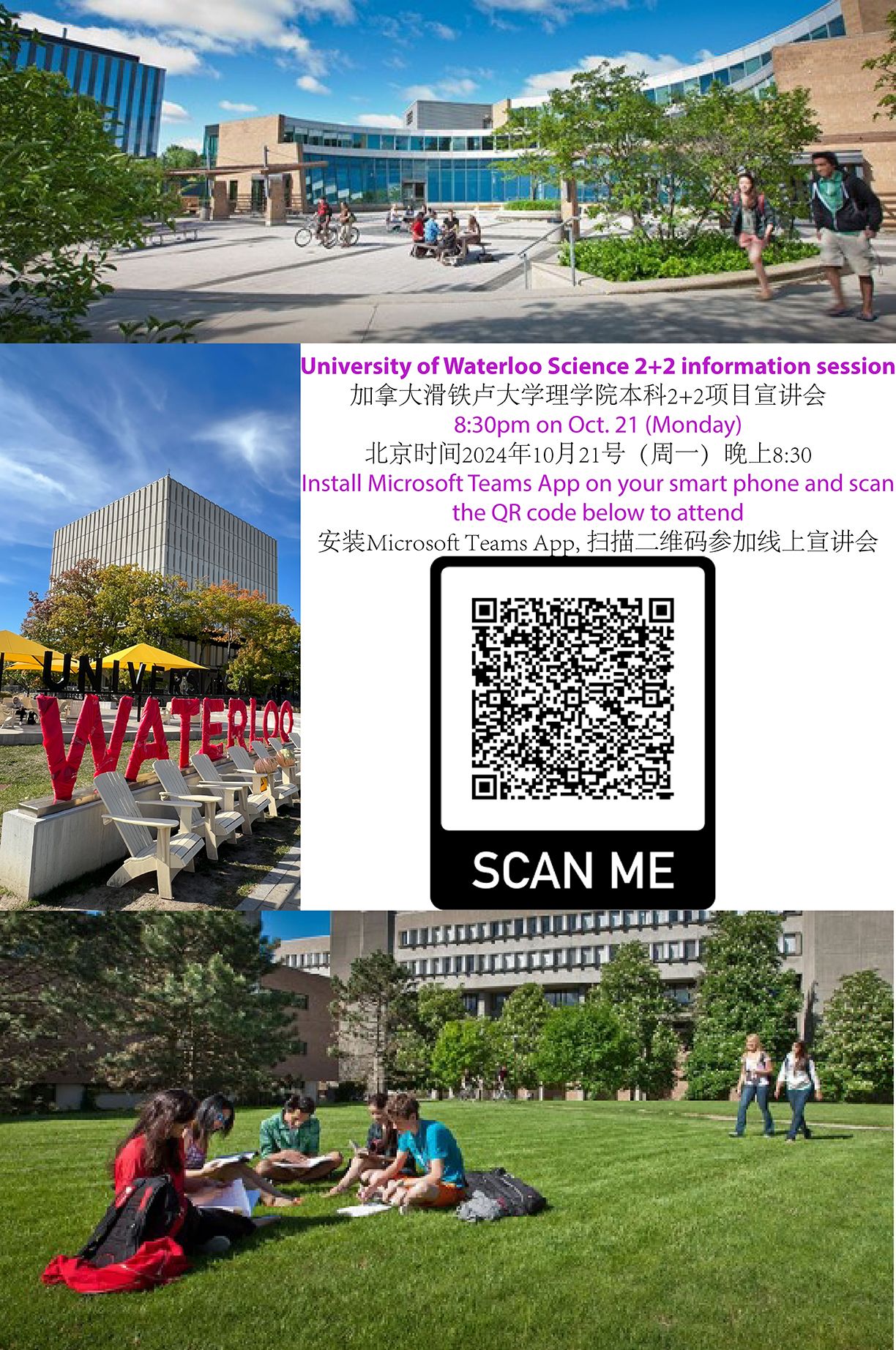 Science 2+2线上宣讲所用平台为MS Teams,同学们可在电脑上免费安装 MS Teams (https://www.microsoft.com/en-ca/microsoft-365/microsoft-teams/download-app) 或者直接用网页浏览器参加。UWaterloo Science 2+2 info session 链接为:https://teams.microsoft.com/l/meetup-join/19%3ameeting_NWFhNTJlOTUtYzJiYi00MDU5LWIxOTQtZTZiZDI5YjljYTI1%40thread.v2/0?context=%7b%22Tid%22%3a%22723a5a87-f39a-4a22-9247-3fc240c01396%22%2c%22Oid%22%3a%227f712ed6-c3ea-46c9-81e1-03af5ef9fd2f%22%7d 。