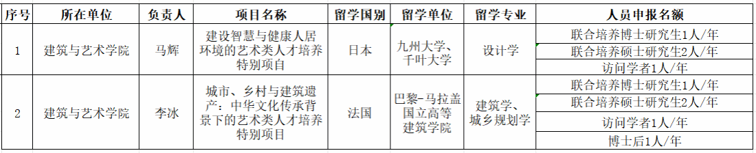 我校立项内容见下表: