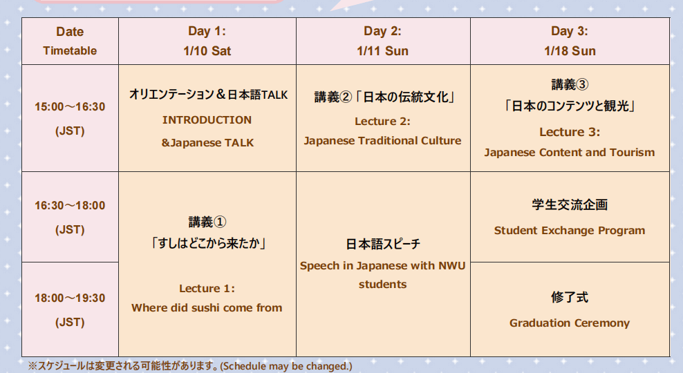 奈良女子大学是我校的友好高校,现开展2026年冬季线上日本语课程项目,在此项目中,学生将有很多机会说日语,也是锻炼日语能力的好机会。欢迎我校感兴趣的同学积极报名。