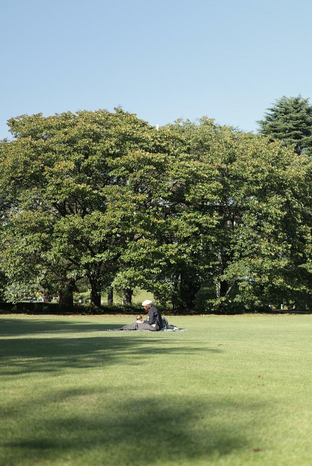 这张照片是在新宿御苑拍摄的,一位母亲在草坪上和她的小孩一起晒太阳。是很温暖、充满母爱的一幅画面,但是细心发现,公园里带小孩一起出来遛弯、散心的,几乎都是全职家庭主妇。认识的一位网络上友邻如此表达道:“下午来东京的公园会有一种特别的抑郁。阳光很好,景色绝佳,大人与放学的小孩共享天伦之乐。但这一切的诡异之处在于:所有的大人,都是妈妈。”