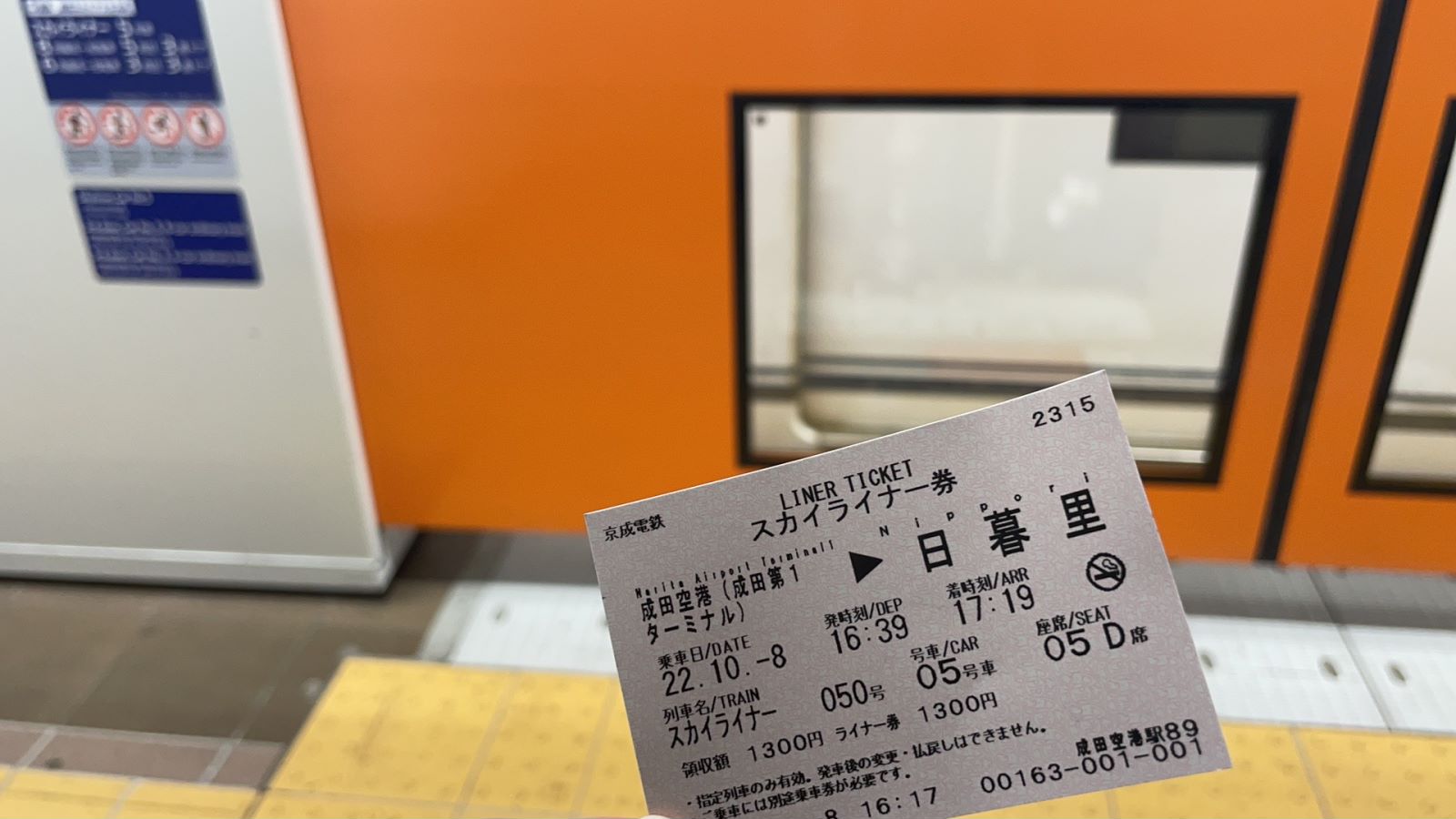 成田国际机场距离距东京都较远,一般而言,从成田机场到东京市区,乘坐机场Skyliner快速线会比较较快到达目的地。我的住宿地在练马区,因此准备先乘坐Skyliner到日暮里,再转JY山手线内环到池袋。彼时刚好车窗外太阳西沉,开往日暮里的列车车厢内盛满落日的温暖余晖,是我切身觉得自己真正抵达日本、抵达东京的最初印象。