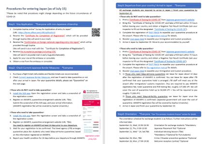 这是当时上智大学为交换生所提供的入境流程说明书,条理清晰、细致入微,但从入境所需完成的步骤和条目来看,入境的手续还是较为复杂繁琐的。