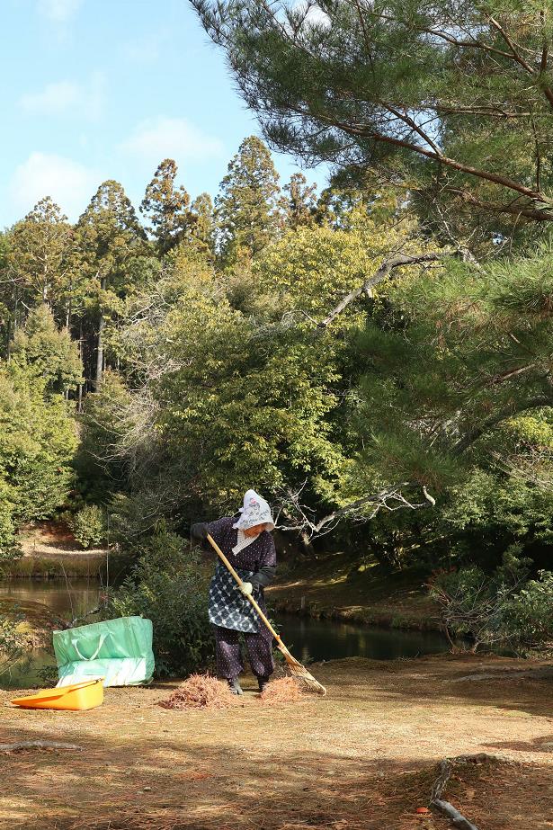 参观金阁寺的时候在清扫庭院的老奶奶