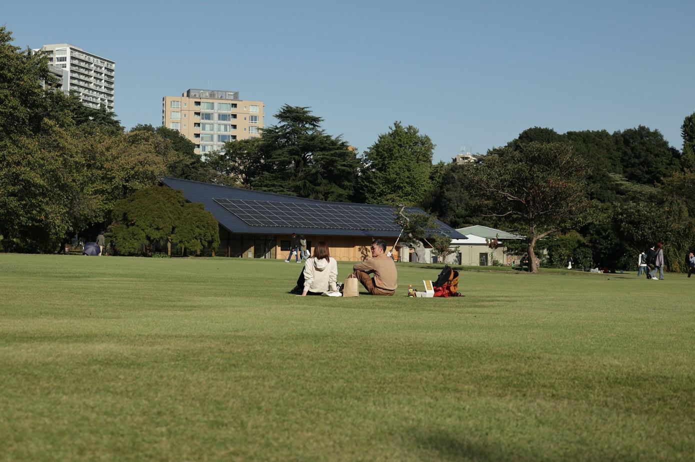 在新宿御苑草坪上晒太阳