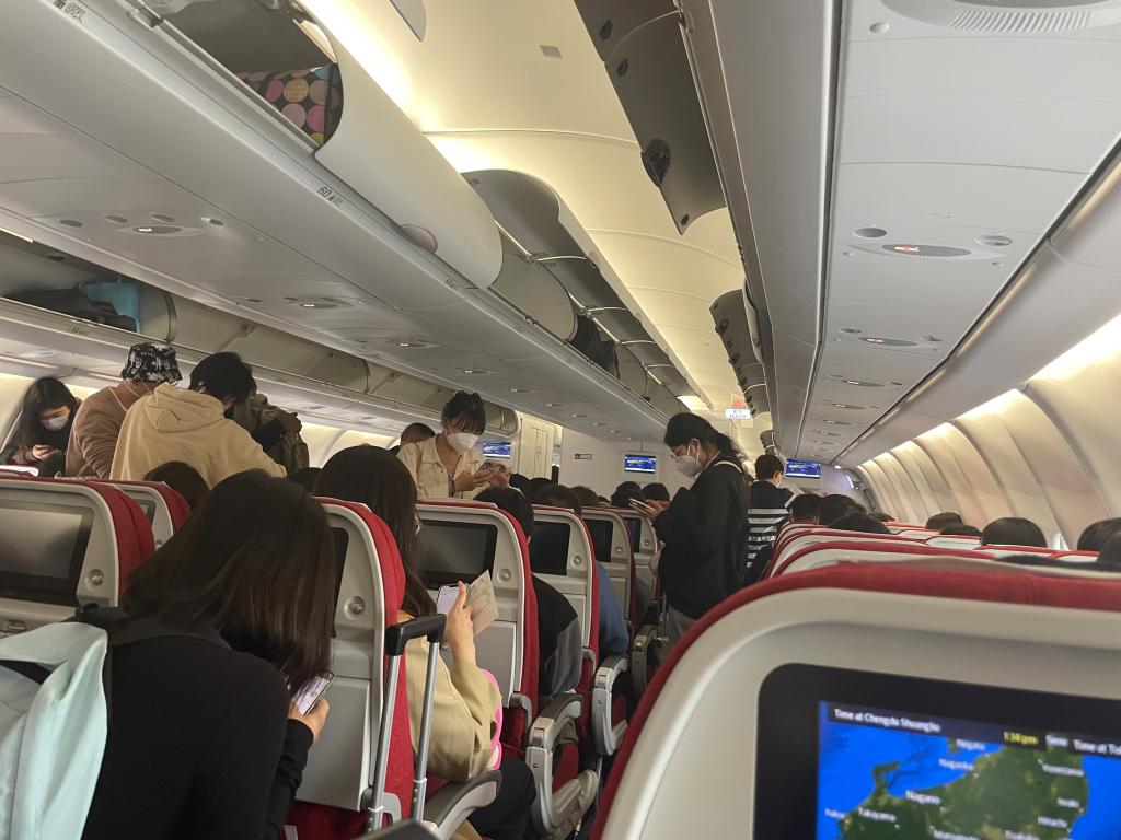 落地成田机场时的机舱内景象