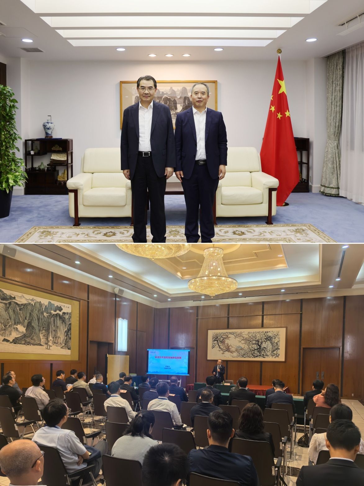 訪問期間中、代表団は駐日本国特命全権大使である呉江浩氏を表敬訪問しました。呉大使は、大連理工大学の中日高等教育と青少年交流における貢献を高く評価し、中日教育交流協力のさらなる発展について深く交流しました。また、賈学長は呉江浩大使に「製造技術が先進的装備開発に役割を果たす」などをテーマとした報告を行いました。